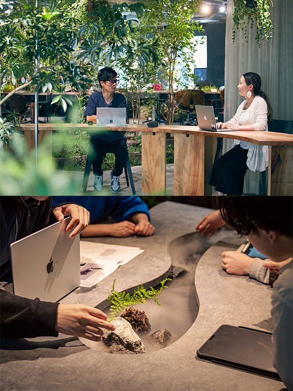 【法人向けサービス】・空間プロデュース(トータルコンセプト設計)/ 空間デザイン(内装設計・外構設計・環境計画)/ 施工(監理)/植栽メンテナンス/植物を使った企画やブランディングなど |