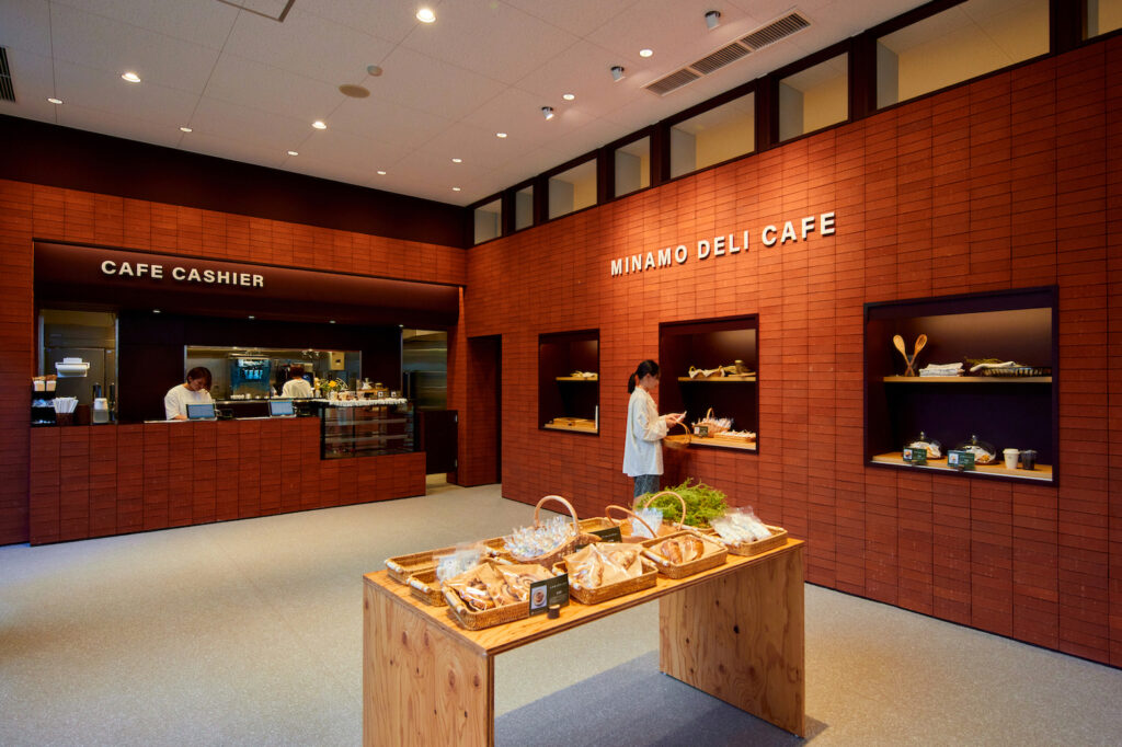 富岡製糸場などの歴史的建造物にも使われている赤煉瓦でカフェエリアの壁を構成し、土地とのつながりを意識した素材使いで群馬の特徴を表現しました。