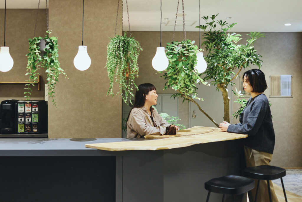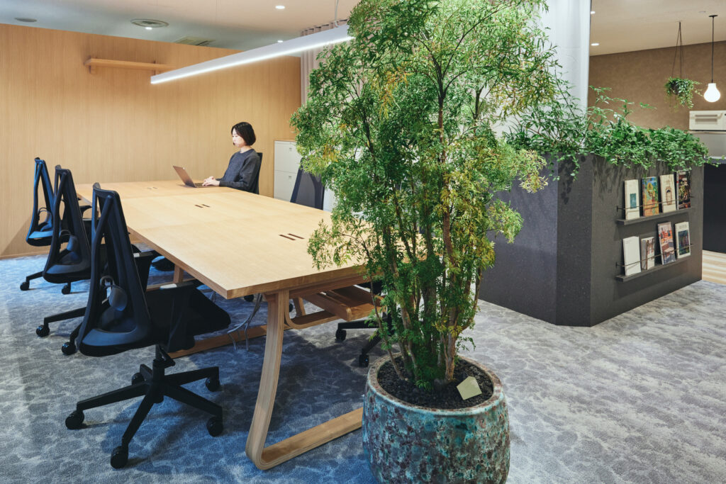新芽が出たりツルが伸びて少しずつ変化していくオフィス。植物があることで散りばめられた感受性のスイッチ一つ一つが際立ち、出社したくなる、帰ってきたくなる、コミュニケーションが心地よく感じられる、そんなオフィス空間になりました。