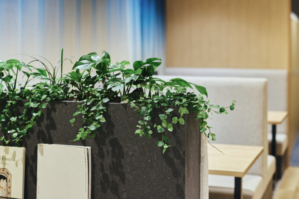 新芽が出たりツルが伸びて少しずつ変化していくオフィス。植物があることで散りばめられた感受性のスイッチ一つ一つが際立ち、出社したくなる、帰ってきたくなる、コミュニケーションが心地よく感じられる、そんなオフィス空間になりました。